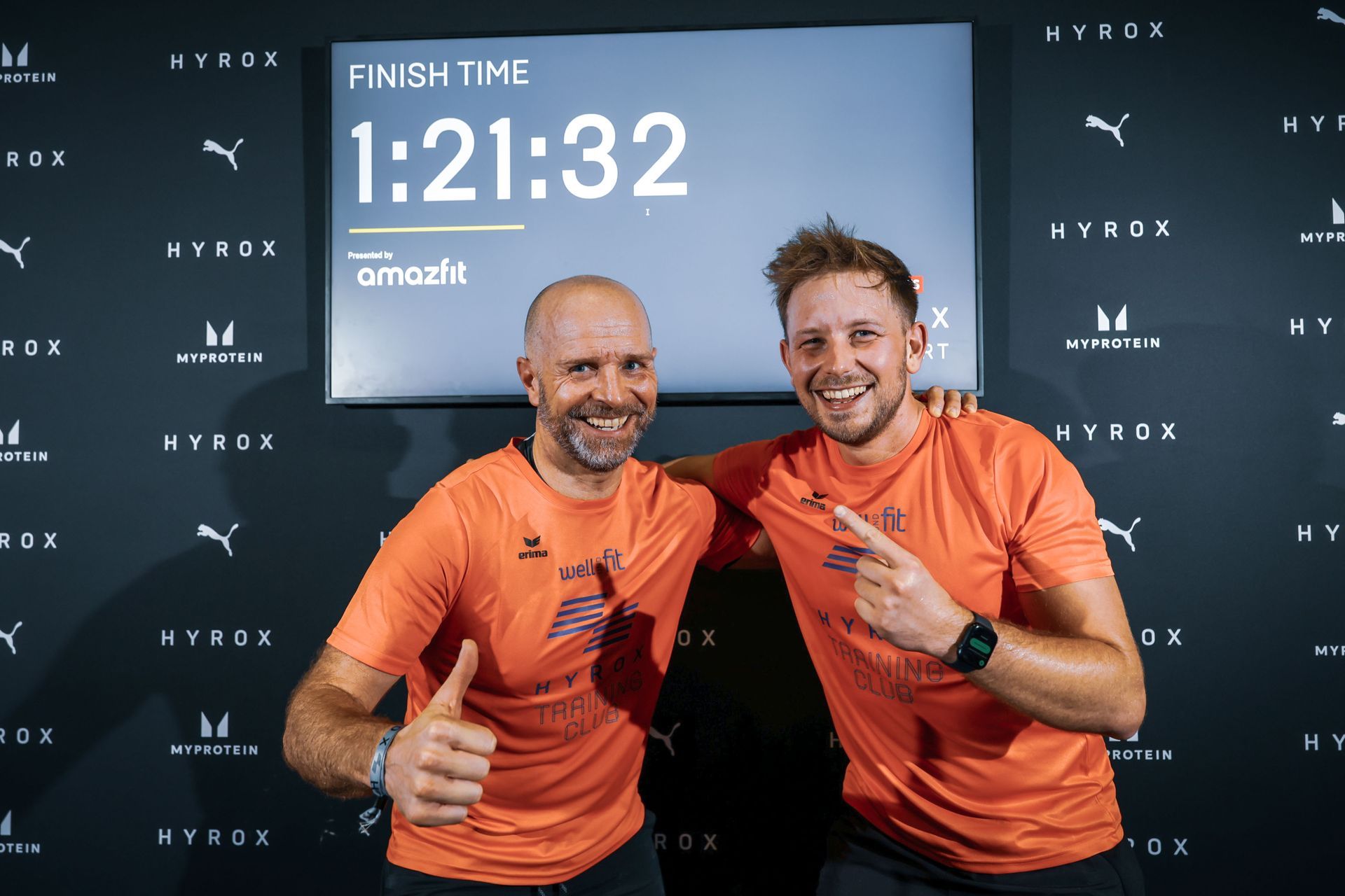 Die Idee von HYROX ist es, einen standardisierten Fitnesswettkampf anzubieten, der für Sportler:innen aller Leistungsstufen zugänglich ist. Und so ist es auch bei uns im wellundfit mit dem HYROX SPRINT und in unseren Kursen im Fitnessstudio.